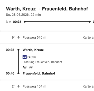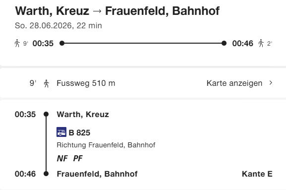 Letzte Verbindung nach Frauenfeld Bahnhof mit ÖV